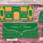 Make your blessings memorable with a “Maharani Panel Royal Green Personalized Shagun Envelope” crafted for elegance and celebration.